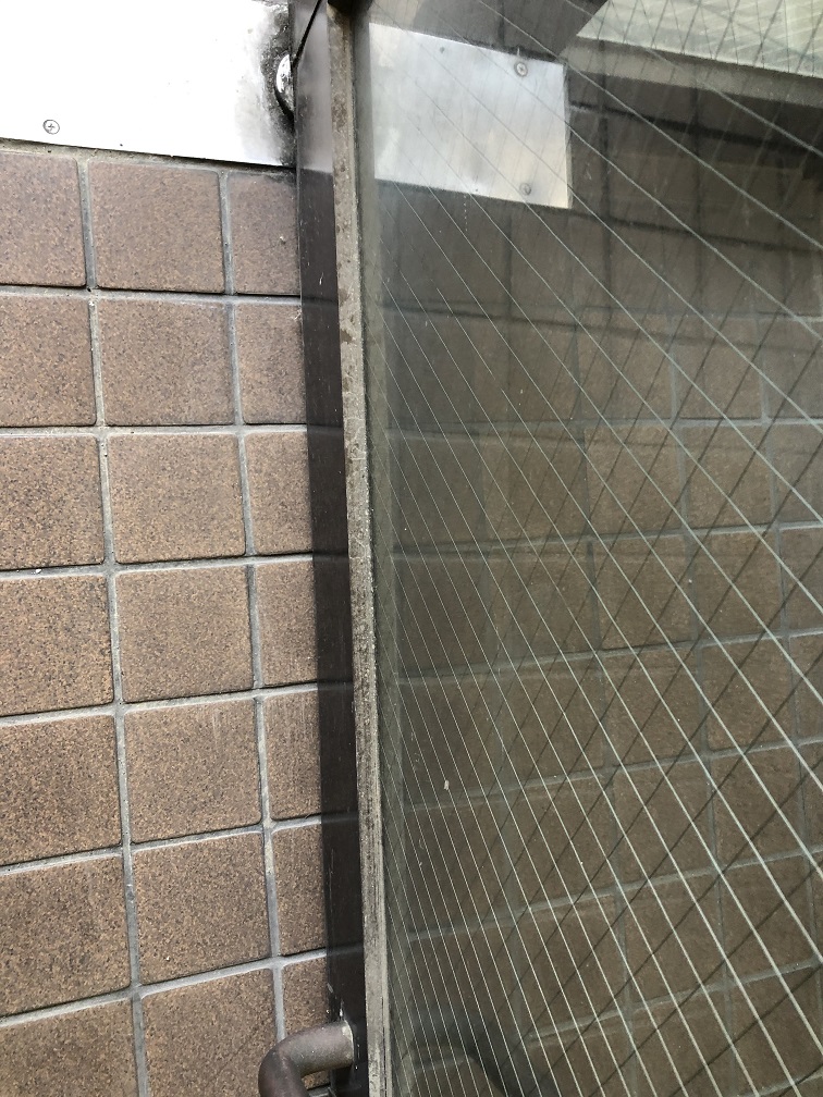 エントランス等のガラスは拭けてることが多いですが、下の少し出っ張った部分に埃が積もっていました。