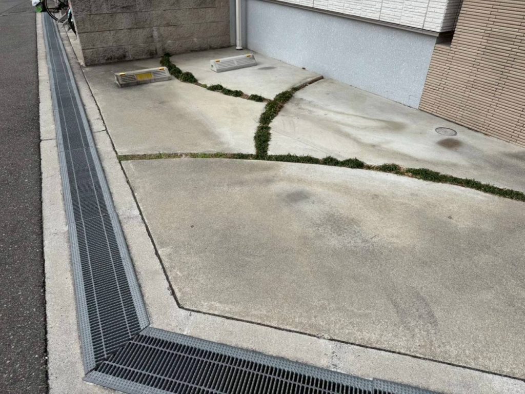 □駐輪場のゴミ拾い、駐車場のゴミ拾い、蜘蛛の巣点検、簡単な雑草抜き(植栽内は除外)